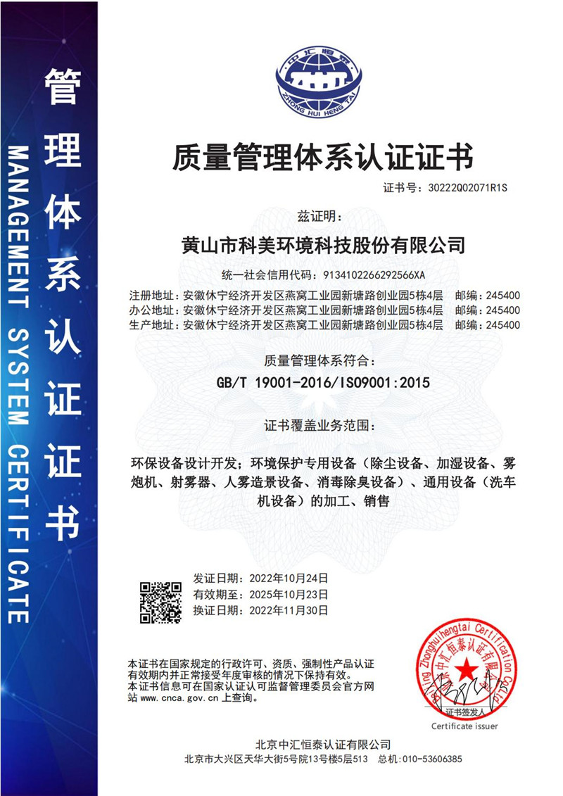 • 質量管理體系認證證書